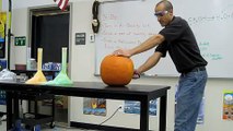 <p>Une expérience en cours de chimie spéciale Halloween avec une citrouille, du gaz et une flamme.</p>