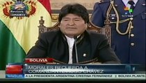 El presidente de Bolivia, Evo Morales, viajará esta misma noche hacia Caracas para despedir a Hugo Chávez. Morales ofreció una conferencia de prensa antes de partir hacia Venezuela y envió condolencias a todos los ciudadanos de este país. "Toda la fotaleza al pueblo venezolano, al gobierno de Venezuela. Estamos destrozados por el fallecimiento del hermano Hugo Chávez", dijo.