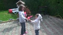 Lucie fait des bulles dans l'eau ...