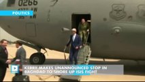 U.S. Secretary of State John Kerry made an unannounced trip to Iraq, arriving in Baghdad on the heels of meetings in Jerusalem.<br/> <br />The U.S.'s top diplomat is expected to urge Iraqi Prime Minister Nuri al-Maliki to take a more aggressive role in Iranian flights in their airspace.<br/> <br />Washington believes weapons coming from Iran are fueling Syria's now two year-conflict.<br/> <br />According to U.S. officials, Iraq has inspected only two flights since July of last year.<br/> <br />Washington is paying close attention to the impact that Syria's conflict, which pits Sunni rebels against the government, is having on the region. New reports suggest Sunni insurgents with ties to Al Qaeda are regaining ground in Iraq and behind recent attacks on Shi'ite targets.