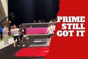 Deion Sanders catches an unexpected interception at the Super Bowl Flag Football Game