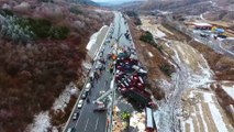 This fog-shrouded stretch of highway in the U.S. state of Virginia was the scene of a 75-vehicle pile-up on Sunday.<br/> <br />Three people were killed and 25 injured in the crash.<br/> <br />(SOUNDBITE) (English) UNIDENTIFIED ACCIDENT VICTIM, SAYING:<br/> <br />"We had stopped, we had seen there was some carnage in front of us and then all of a sudden behind us, the UPS truck came and side swiped our entire car on one side. We thought we were both dead."<br/> <br />Joe Carrabba, who was driving along the interstate, said he was lucky to be alive.<br/> <br />(SOUNDBITE) (English) DRIVER, JOE CARRABBA, SAYING:<br/> <br />"The tyres were exploding on the trucks that were on fire, we didn't know what it was and you could just hear the cars hitting one after the other."<br/> <br />The Virginia Department of Transportation said the accident backed up traffic for eight miles, with the interstate closed in both directions.<br/> <br />Police said heavy fog was to blame for the accident.