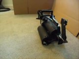 More views of the new doubled minigun. I mirrored the center of the gun, and made both sides powered by the same motor. Five gears that I made myself make it possible. It howls to life when you connect 7-18 volts DC and hit the fire button.