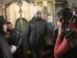 Parintele Iustin Parvu si obstile de monahi si monahii de la Manastirea Petru Voda, cantand colinde la Nasterea Domnului 2008
