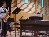 Quentin, musicien junior de la BAND'A LEO, interprète "le Basque" de Marais, lors du concert de l'école de musique de Léognan, samedi 13 avril 2013.