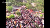 Thousands throw money off bridge to pray for peace