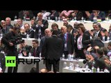 (ROUGH CUT ONLY - NO REPORTER NARRATION)<br/> <br />U.S. Secretary of State John Kerry met a group of senior Arab officials on Monday (April 29) as he sought to build regional support for any fresh push for Israeli-Palestinian peace.<br/> <br />Kerry has made no secret of his hope to revive peace talks, which broke down in 2010, but it remains unclear whether U.S. President Barack Obama will decide to back a major U.S. effort.<br/> <br />In convening the group, Kerry is trying to ensure that a new peace process would have the backing of the Arab states, who, if they were to offer Israel a comprehensive peace, hold a powerful card that could provide an incentive for Israeli compromises.<br/> <br />After meeting the Bahraini, Egyptian, Jordanian and Qatari foreign ministers as well as with officials from Lebanon, Saudi Arabia, the Palestinian Authority and the Arab League, Kerry and the Arab states voiced support for a 2002 Arab League peace initiative.<br/> <br />"On behalf of the President, I reaffirmed, as di