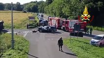 RECOARO TERME - Un pullman di linea, che trasportava 40 studenti, è stato completamente distrutto dalle fiamme a Recoaro Terme, nel vicentino. Il conducente ha fatto in tempo a mettere in salvo i ragazzi, solo due di loro si sono fatti visitare al Pronto Soccorso. Chiusa per ore la strada che porta a Valdagno, il mezzo era quasi nuovo.<br /> - Servizio di Federico Fusetti, riprese di Mirco Longhi, montaggio di Paola Barbato
