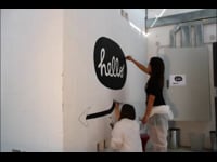 Pintando un gran HOLA (qué tal) en la entrada de HerraizSoto. Mi ayudante en cabeza, Carol Peña y nuestro gran cámara David Reina....